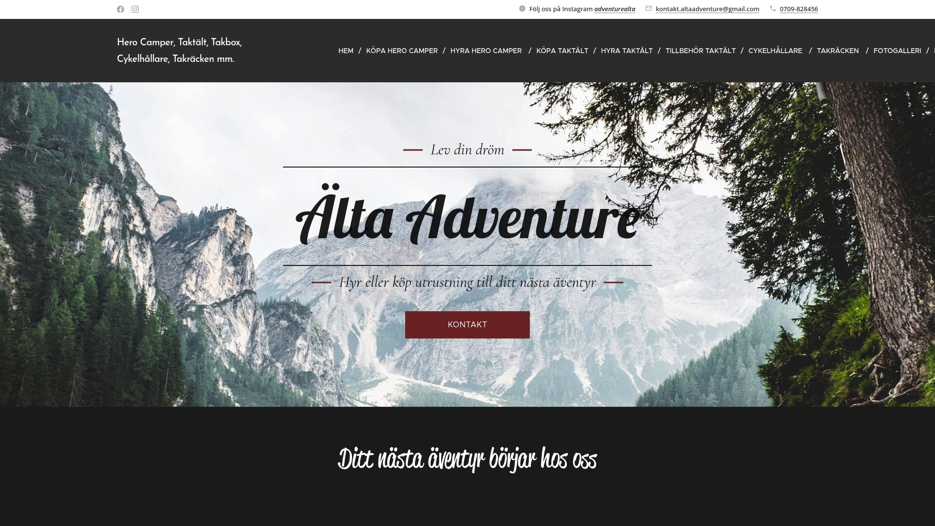 Företaget fokuserar på ett brett utbud av taktält i flera modeller tillsammans med hyra, fysiska showroom och kompletterande campingutrustning. Webbplatsen erbjuder guider och inspiration som hjälper dig planera campingresor och välja rätt modell för din användning.