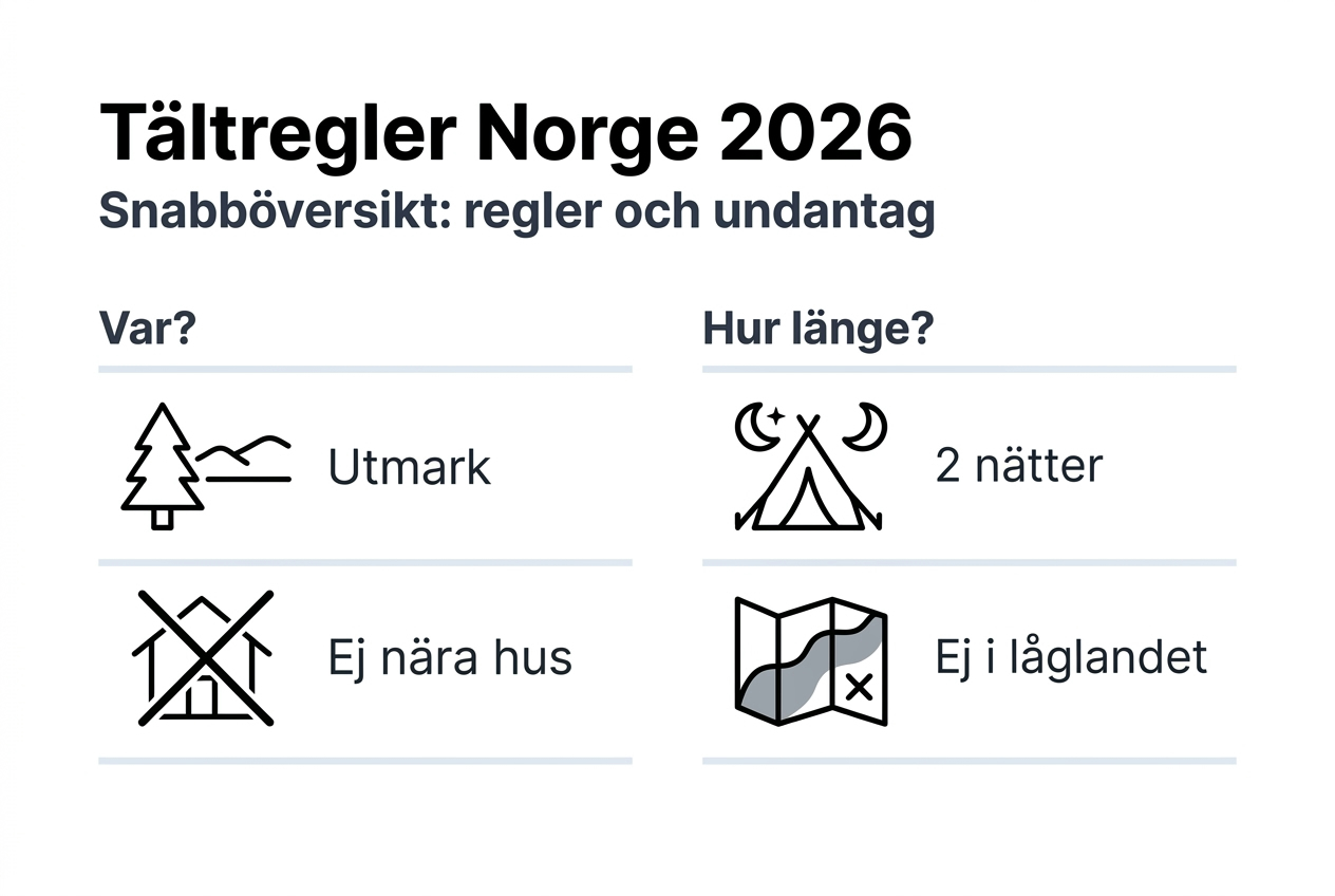 Många tror att man kan slå upp tält precis var som helst i Norge utan restriktioner, men verkligheten är mer nyanserad. Norge har generösa allemansrättsregler som ger stor frihet att campa i naturen, men det finns tydliga ramar kring avstånd, tidsbegränsningar och områdesskydd som du måste känna till. Att förstå dessa regler är skillnaden mellan laglig, ansvarsfull camping och oavsiktliga regelbrott som kan leda till böter eller konflikter med markägare.